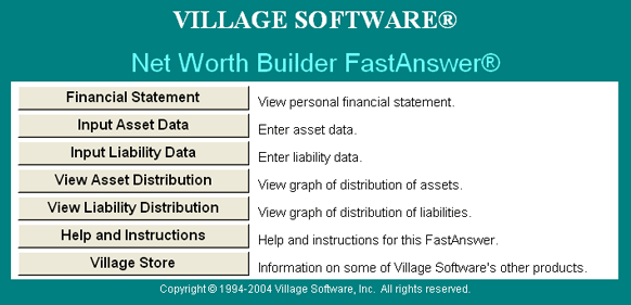 • FastAnswer™ Net Worth Builder is so easy to use - you can jump right in and get started. Even a novice spreadsheet user can create personal net worth statements in a flash.