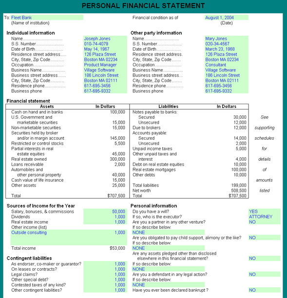 Personal financial statement