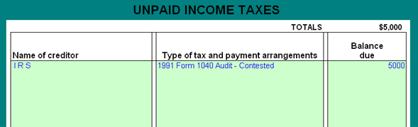 Unpaid income taxes