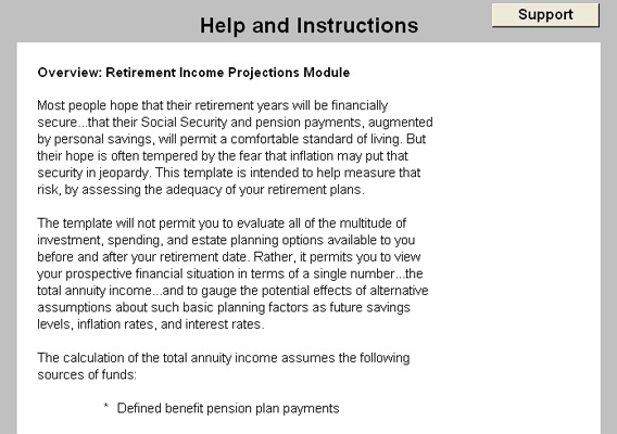 • Over a dozen pages of content give you in-depth analyses of your retirement plans.