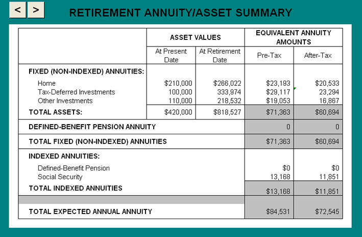 Retirement annuity/asset summary