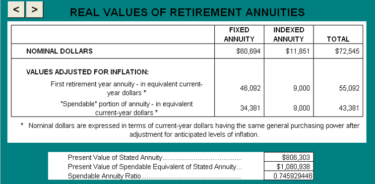 Real values of retirement annuities