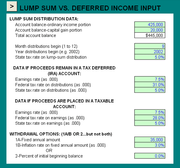Lump sum vs. deferred income input