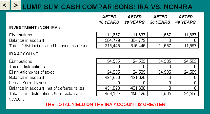 Lump sum cash comparisons - IRA vs Non-IRA