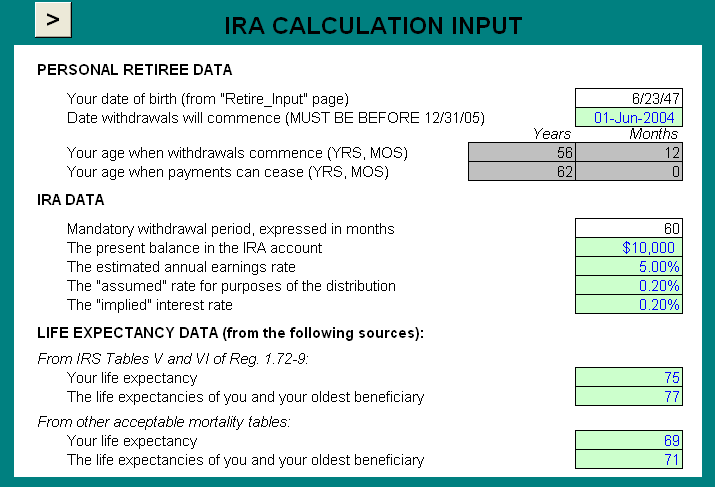 IRA calculation input