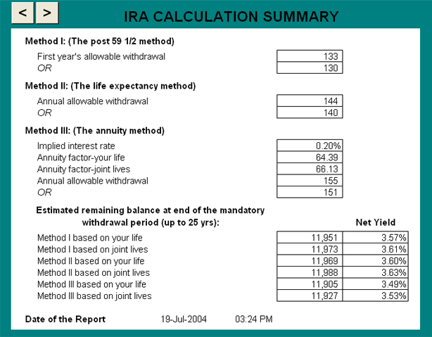 IRA calculation summary