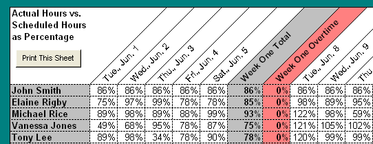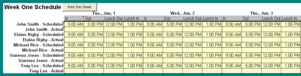 Automate your weekly employee schedules. Compare actual vs. scheduled hours. Ideal for office managers, restaurant managers, or anyone involved in scheduling....learn more