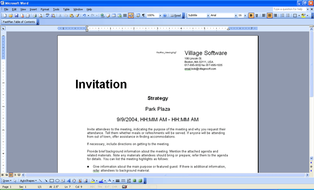 Nameplate, an Attendee Profile, and a Regrets Memo.