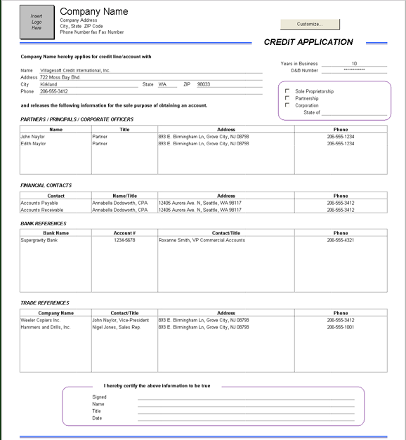 business-to-business credit applications while Credit