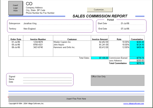 costs. The Sales Commission Report tracks a rep's