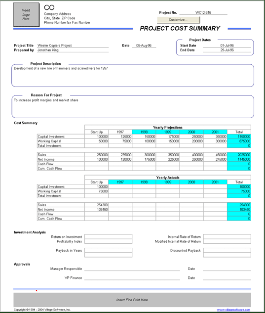 accomplishments. The Project Cost Summary records