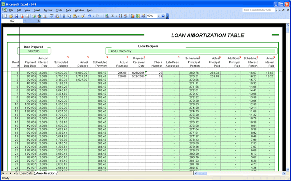 Exceptional flexibility is the unique selling point of Money Out. You can change the terms (interest rate, repayment date, late fee calculations, etc.) of a loan on a monthly basis. This flexibility is achieved by Money Out's ability to generate comprehensive Excel Spreadsheets for every loan based on the loan information provided in the database. The spreadsheet offers you a well known interface to make changes for loans and save the changes back to the database. You can have multiple spreadsheet models based on the loan structures of your organization. Amortized loans, balloon loans, and line of credit (LOC) are some of the types of loan structures included in the system.